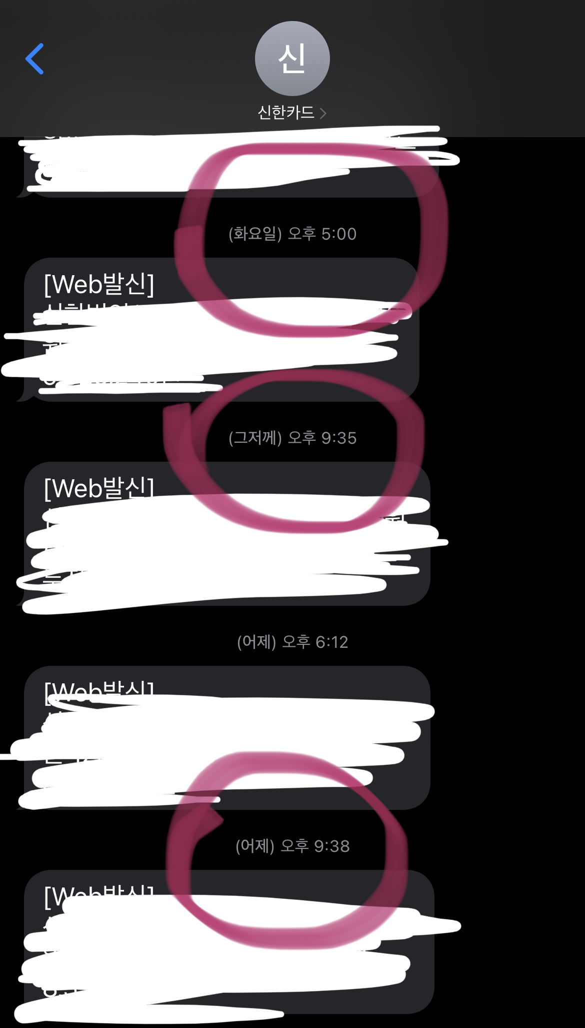 위에 19번 예시로 캡처한 사진을 봐도 알 수 있듯 날짜가 제대로 안 떠서 도대체가 답답한 적이 많다. 왜 저렇게 표기하는지 모르겠는데 진짜 너무 불편.. 심지어 요일이 나오는 건 그나마 자세한거고 ㅎㅎ 오늘, 어제, 그저께 이러고 있음;;; 안 믿을 거 같으니 메시지 캡처를 해보겠다.